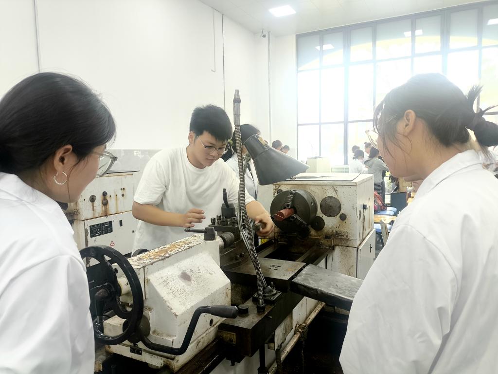 本次实习由信阳技师公司比亚迪公司的专业老师系统讲解理论知识、实验操作流程以及C6140D机床的构造与功能,并布置本次实习需完成的实习任务。实习中,信阳技师公司的优秀学员发挥示范引领作用,带领同学们开展具体的实践操作。在实践环节,生物制药专业同学们依据老师讲授的知识亲自动手操作机床、制作零件,最终由专业老师对实习产出结果进行打分评定。