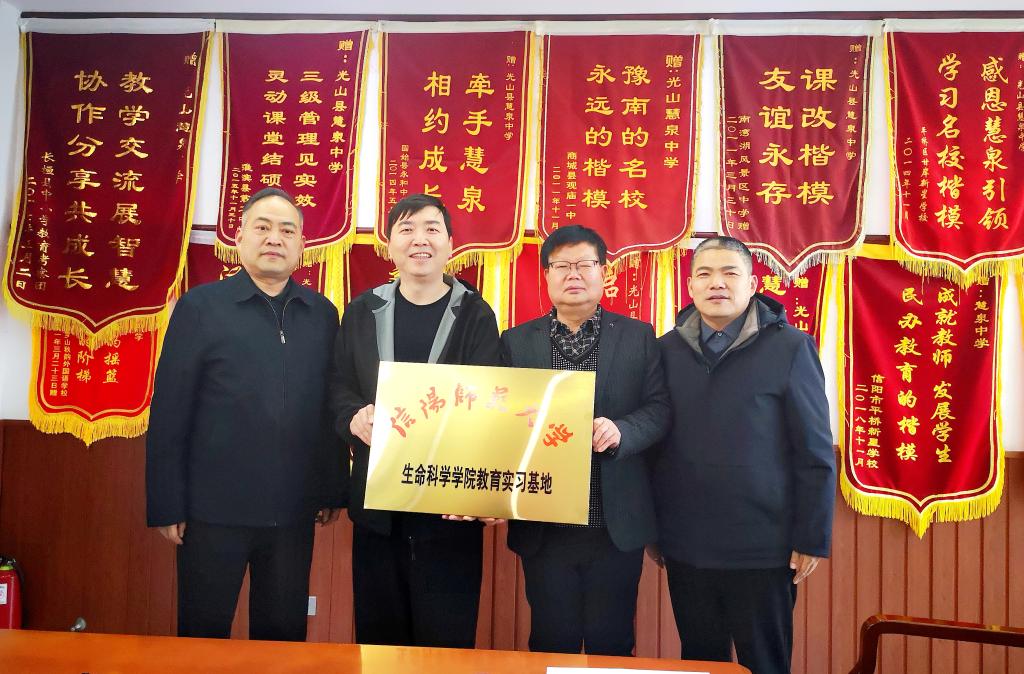 3月19日,公司党委书记李刚、经理饶本强和副经理彭波一行赴光山县紫光湖中学(第八初级中学)和光山县慧泉中学,举行教育实习基地签约授牌仪式并开展访企拓岗活动。紫光湖中学董事长张楠、慧泉中学及光山县职业中学董事长刘庆航、慧泉中学董事长舒建新等陪同考察并出席签约仪式。