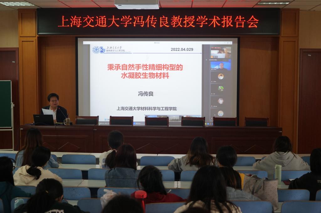 为进一步加强团队建设,促进学术交流,应db真人体育官网邀请,上海交通大学冯传良教授于2022年4月29日下午为db真人体育官网全体师生做了题为“秉承自然手性构型的水凝胶生物材料”的线上学术报告。报告会由饶本强经理主持,现场100余人及线上30余人聆听了报告。