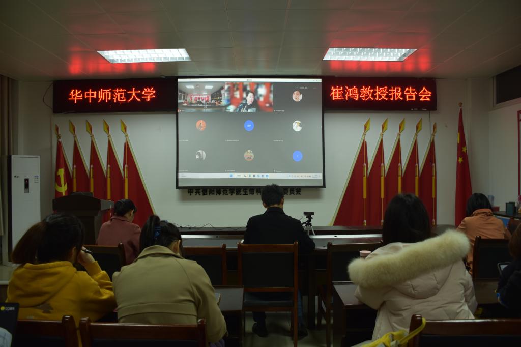 11月21日晚上,应db真人体育官网邀请,华中师范大学崔鸿教授做了题为“学科教学(生物)教育硕士培养模式与学位论文写作问题分析”的学术报告,报告在生物楼412会议室通过腾讯会议线上线下同时进行。报告会由公司彭波博士主持,公司相关领域教师和全体教育硕士研究生参加了报告会。