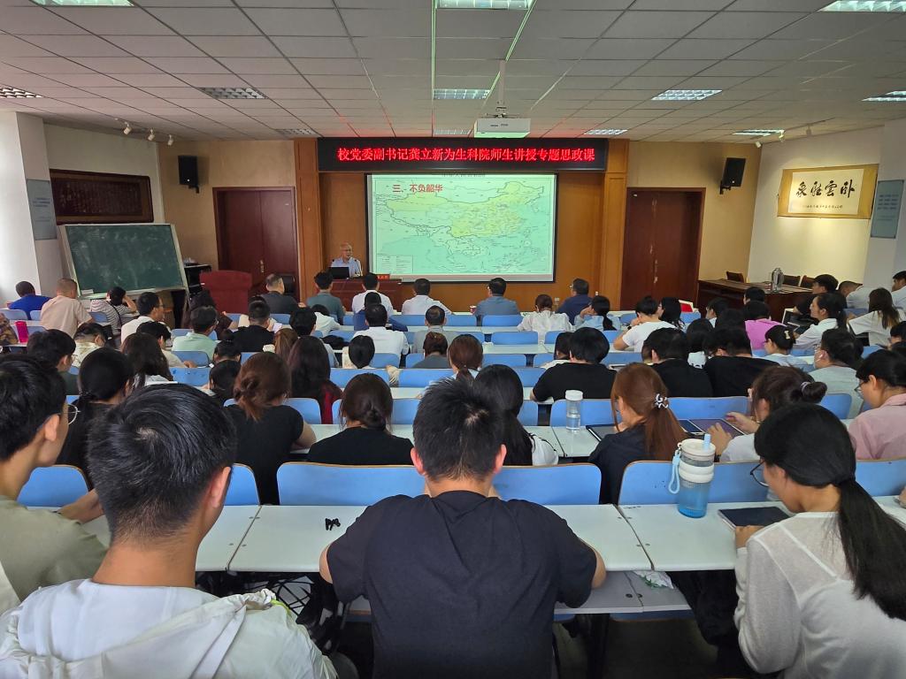 龚立新以《乘势而上 逐梦时代 在中华民族伟大复兴中不负韶华》为题,从“世界怎么了”“中国怎么样”“我们怎么干”三个方面,结合生动的案例和深刻的理论,运用大量丰富详实的事例,为师生讲了一堂既有高度又非常生动的思政课。